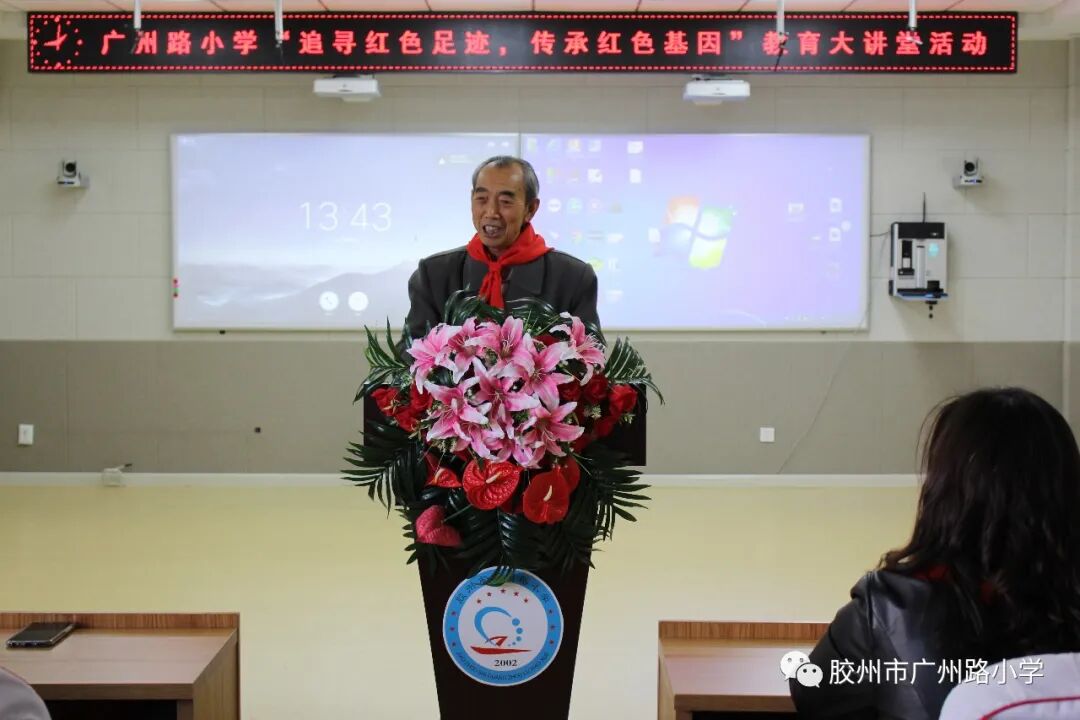 青报教育在线讯 为贯彻落实习近平总书记关于传承红色基因的重要指示精神,大力弘扬以爱国主义为核心的民族精神,持续深化“尚德胶州·身边人讲身边事”活动,根据胶州市“红色故事汇”宣讲安排,12月4日下午,广州路小学隆重举行“追寻红色足迹,传承红色基因”为主题的红色教育大讲堂活动。
