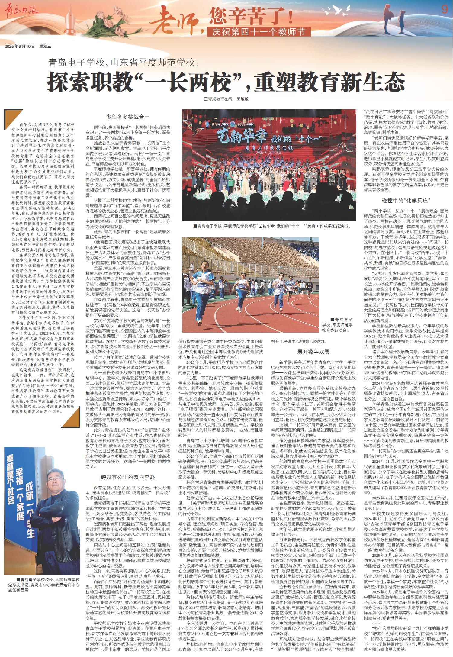 在崔西展看来,数字化转型是一道必答题。而学校所做的数字化转型探索,不仅有助于破解“一长两校”难题,还为后续青岛职业教育布局调整和现代化治理提供数智化策略,为青岛职业教育全域发展提供数智化实践样本。